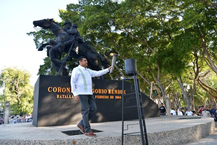 En el acto que tuvo lugar en el monumento ecuestre al Coronel Gregorio Méndez Magaña, el jefe Ejecutivo encendió el fuego simbólico tras recibir el pebetero de manos del atleta paralímpico José Miguel Gómez; Ferrer Cadenas, destacó que el héroe de Jalpa de Méndez, junto a Andrés Sánchez Magallanes y cientos de tabasqueños anónimos dejaron una lección fundamental: “la patria no se negocia y la soberanía no se implora”.