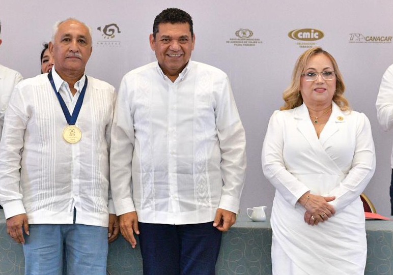 Con una visión a largo plazo que se traduce en proyectos estratégicos y planes como ‘Villahermosa 2030’, el Gobierno del Pueblo refrenda su respaldo y su reconocimiento al sector empresarial tabasqueño, subrayó el mandatario estatal Javier May Rodríguez al encabezar la entrega de la Medalla al Mérito Empresarial 2025, que otorga el Consejo Coordinador Empresarial de Tabasco (CCET) al ingeniero Jaime Merodio Calix.
