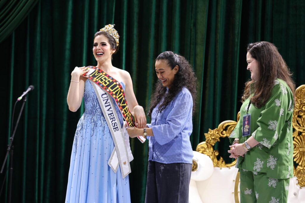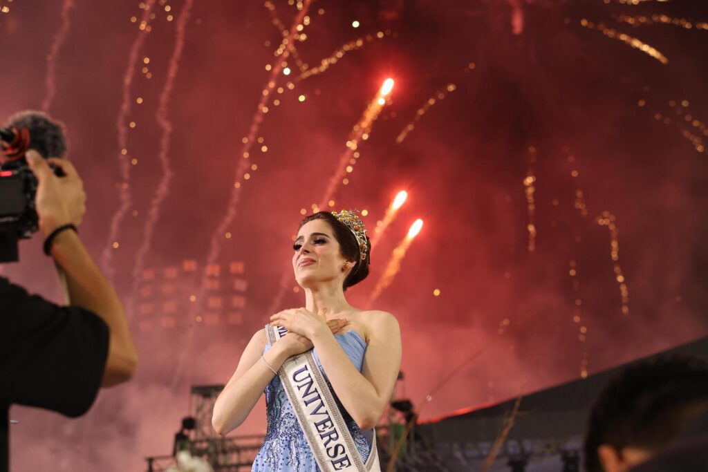 Entre consignas como “¡Tabasco tiene Miss Universe!”, la reina de belleza desfiló alrededor del escenario y ofreció un emotivo discurso que erizó la piel de los asistentes. Con humor y cercanía, bromeó con el público y después habló desde el corazón: