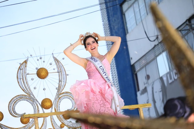 Tras el desfile, la Miss Universo 2025 fue trasladada al Estadio Centenario 27 de Febrero, cuyas puertas se abrieron desde las 2 de la tarde para recibir a miles de personas. El recinto vibró con gritos, porras y aplausos cuando, vestida de azul y a bordo de una camioneta, Fátima avanzó hacia el escenario como una auténtica princesa del sureste.