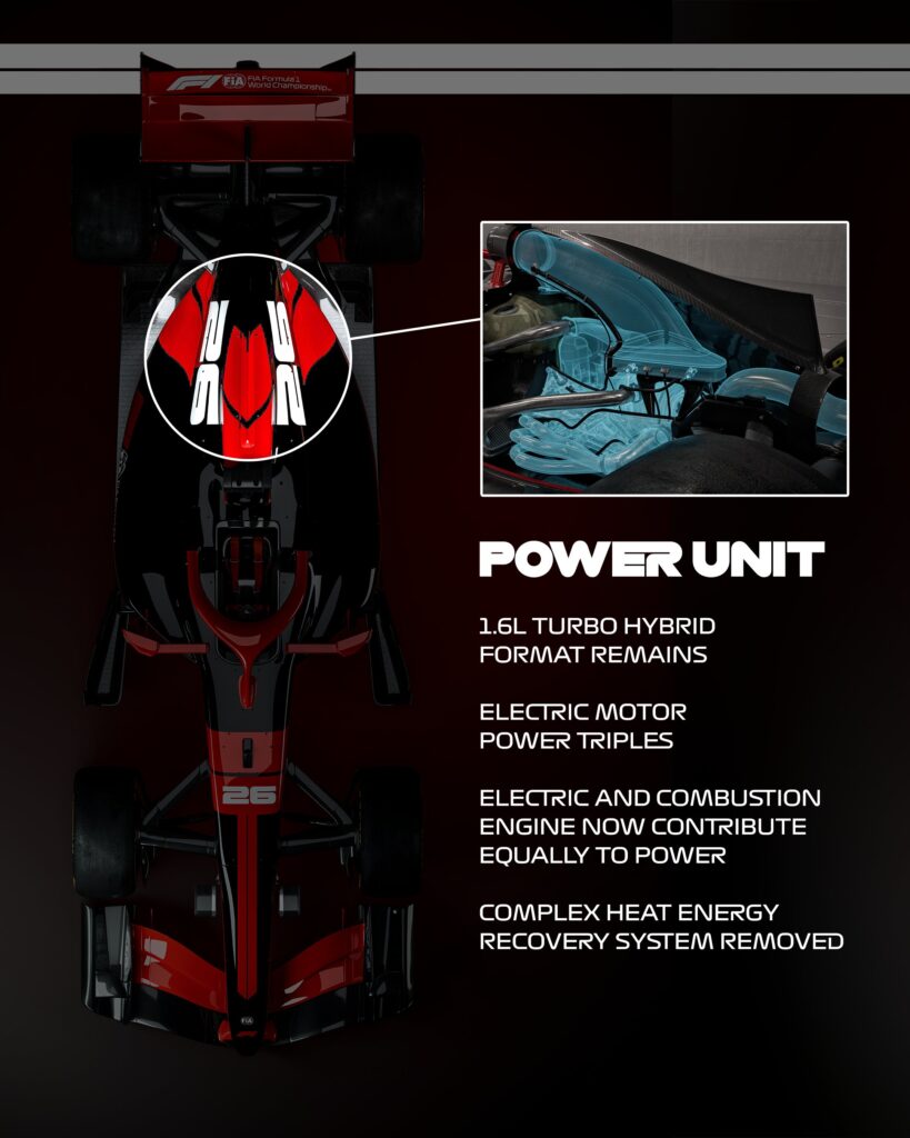 Las unidades de potencia seguirán siendo V6 1.6 litros turbo híbridas, pero con un cambio radical: