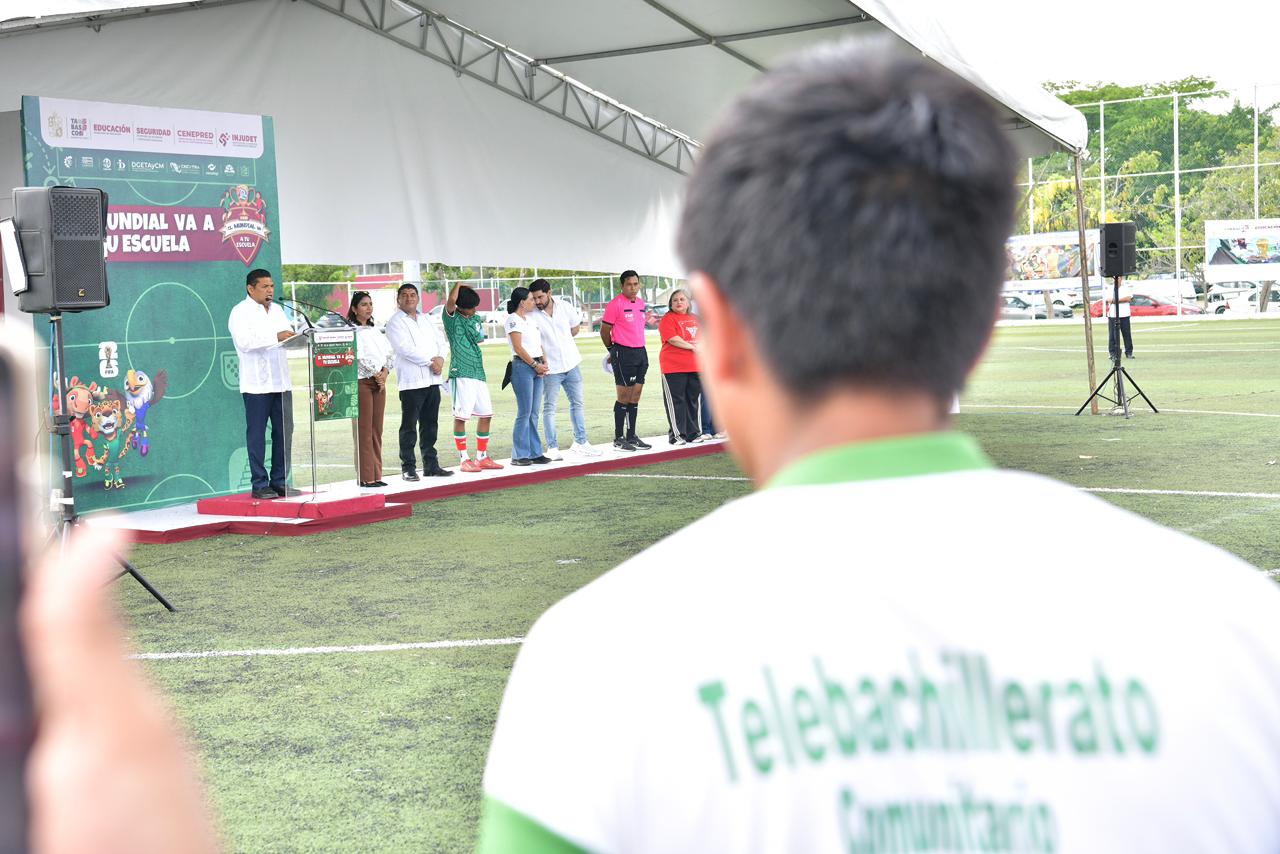 En un ambiente de fiesta deportiva y compromiso social, el Gobierno del Pueblo encabezado por Javier May Rodríguez respaldó la iniciativa impulsa por la Presidenta Claudia Sheinbaum Pardo, al poner en marcha el Torneo de Fútbol “El Mundial va a tu Escuela”, estrategia que busca convertir al deporte en lenguaje común y en una herramienta para la construcción de la paz.