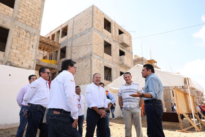 Finalmente, en la colonia José María Pino Suárez, popularmente conocida como “Tierra Colorada”, el Gobernador y el servidor público federal supervisaron el MultiFamiliar INFONAVIT, un conjunto inmobiliario compuesto por 24 edificios con 16 departamentos cada uno, para un total de 384 viviendas, cuya construcción registra un considerable avance.