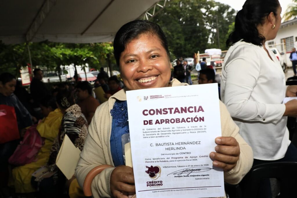 El Gobernador Javier May Rodríguez puso en marcha el programa Crédito Porcino a la Palabra, con la entrega de constancias a las primeras 110 beneficiarias de 11 comunidades de Centro, en cuyo marco resaltó que estas acciones fortalecen el sector pecuario para generar oportunidades reales a las comunidades, reduciendo las desigualdades e incentivando una economía más justa, más incluyente y con raíces en la tierra.