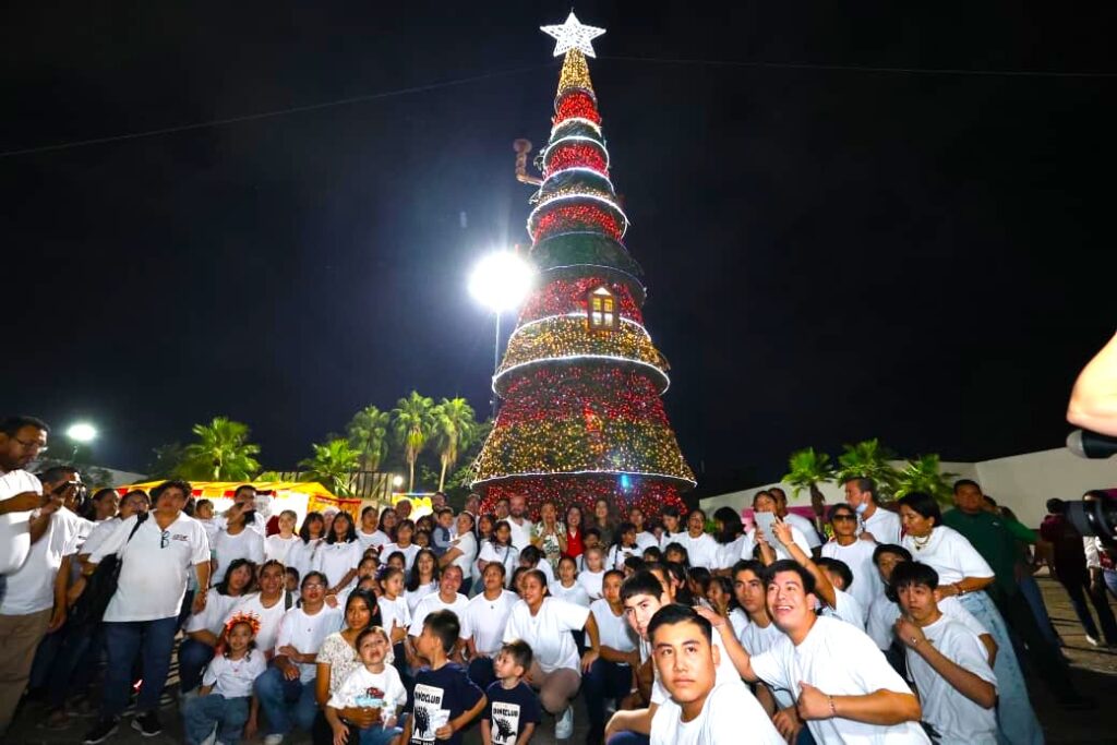 En compañía de niñas, niños y adolescentes de los 24 centros asistenciales que administra el Sistema DIF, así como de la secretaria de Turismo y Desarrollo Económico, Katia Ornelas Gil, y la Flor Tabasco 2025, María Fernanda Palma Miramontes, la maestra Raleigh de la Cruz recorrió los atractivos instalados en el Parque “Dora María”, tras encender las luces de un gigantesco árbol de Navidad que en su interior contiene un set para que los visitantes capturen la tradicional e inolvidable foto del recuerdo.