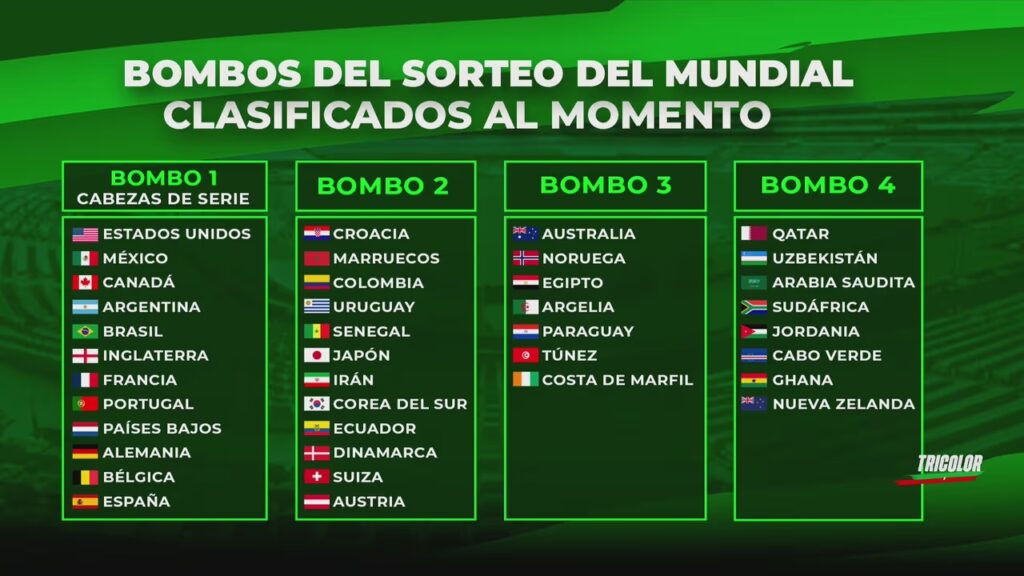 - Aún faltan seis boletos por definir: cuatro del Repechaje europeo y dos del Repechaje intercontinental. Estos equipos se sortearán con designaciones numéricas.