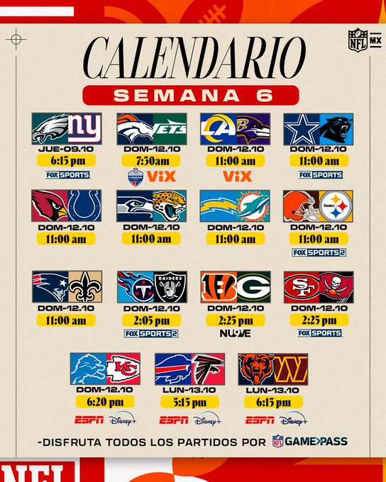 ¿Será esta la semana en que los favoritos retomen el control o el punto de inflexión donde los pronósticos se vuelven imposibles de acertar? A continuación, el panorama completo de la Semana 6 con los momios y picks Sin Tanto Show.