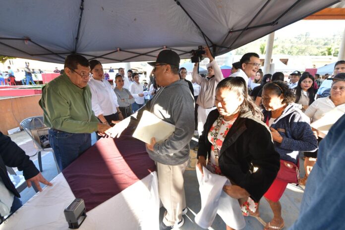 En compañía del presidente municipal de Tacotalpa, Ricki Antonio Arcos Pérez, así como de servidores públicos estatales y federales, el titular del Ejecutivo atendió de manera directa a las familias que se dieron cita en el parque central de este Centro Integrador.