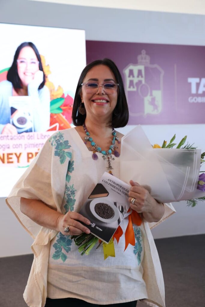 Acompañada de los presentadores, el académico Jorge Adbó Francis y el poeta Héctor de Paz, la novel autora señaló que las 22 crónicas de corte costumbrista y una “no novela” forman una serie de “relatos” escritos “con cariño”, “para tabasqueños de fuera, para foráneos que pretenden una embajadora y para los tabasqueños de shis y amashito”.