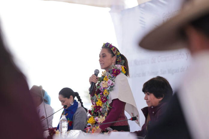 La presidenta acudió a esta comunidad, ubicada a unos 12 kilómetros del centro de San Miguel de Allende, para encabezar el acto del “Plan de Justicia de los Pueblos Chichimeca y Otomí del Noreste de Guanajuato y del Semidesierto de Querétaro”, donde reiteró que el gobierno mexicano no tiene reportes de operaciones militares estadounidenses dentro del espacio aéreo del país.