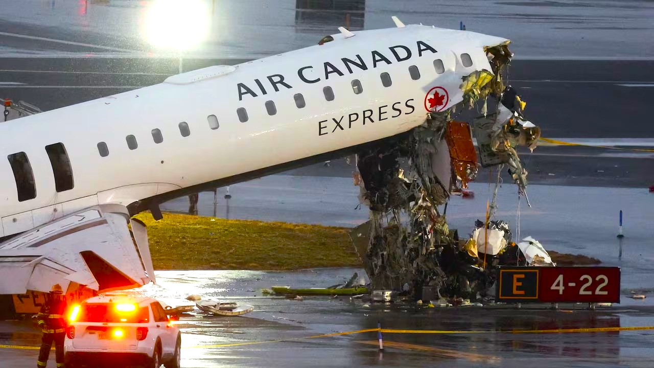 El primer caso ocurrió en Nueva York, en el Aeropuerto LaGuardia, donde un avión de la aerolínea Air Canada Express sufrió un fuerte impacto al aterrizar tras colisionar con un vehículo de emergencia en pista.